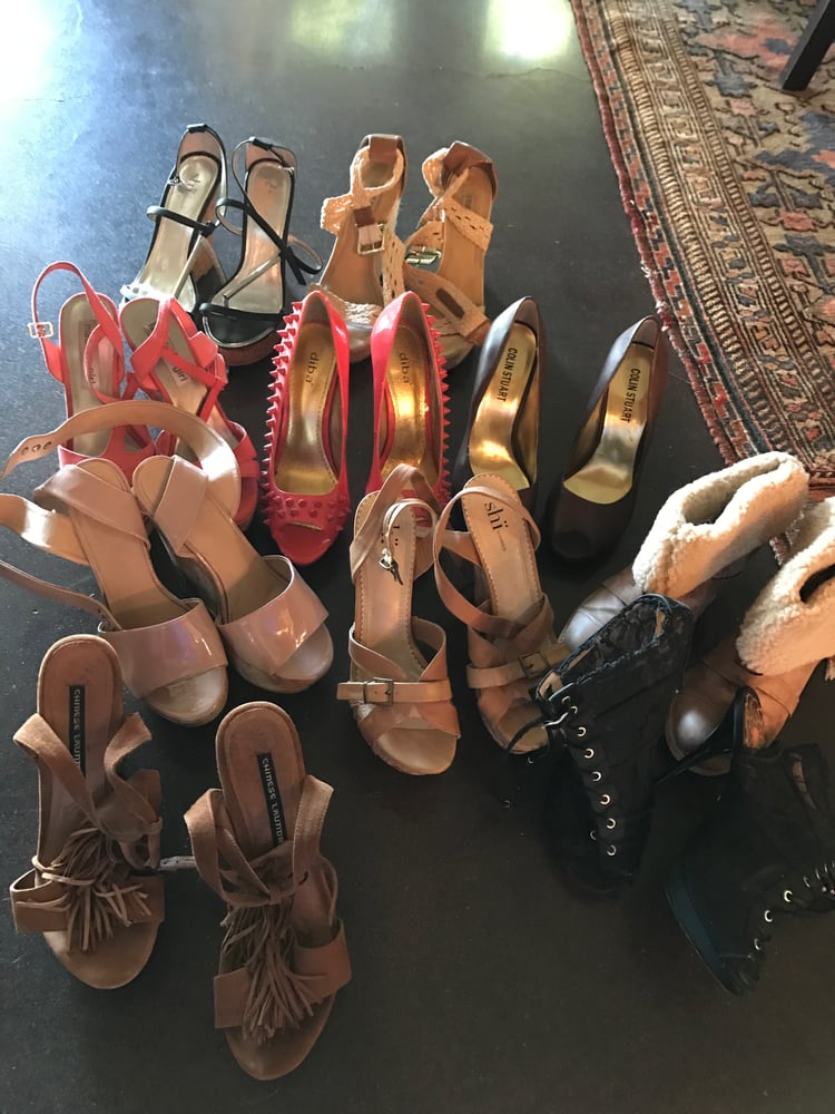 Lots of wedges and heels over 3.5" heels! A pair of brand new Colin Stuart and never worn coral shoes and the rest have been worn. I love the Chinese Laundry fringe wedges! 250$ shipping included!